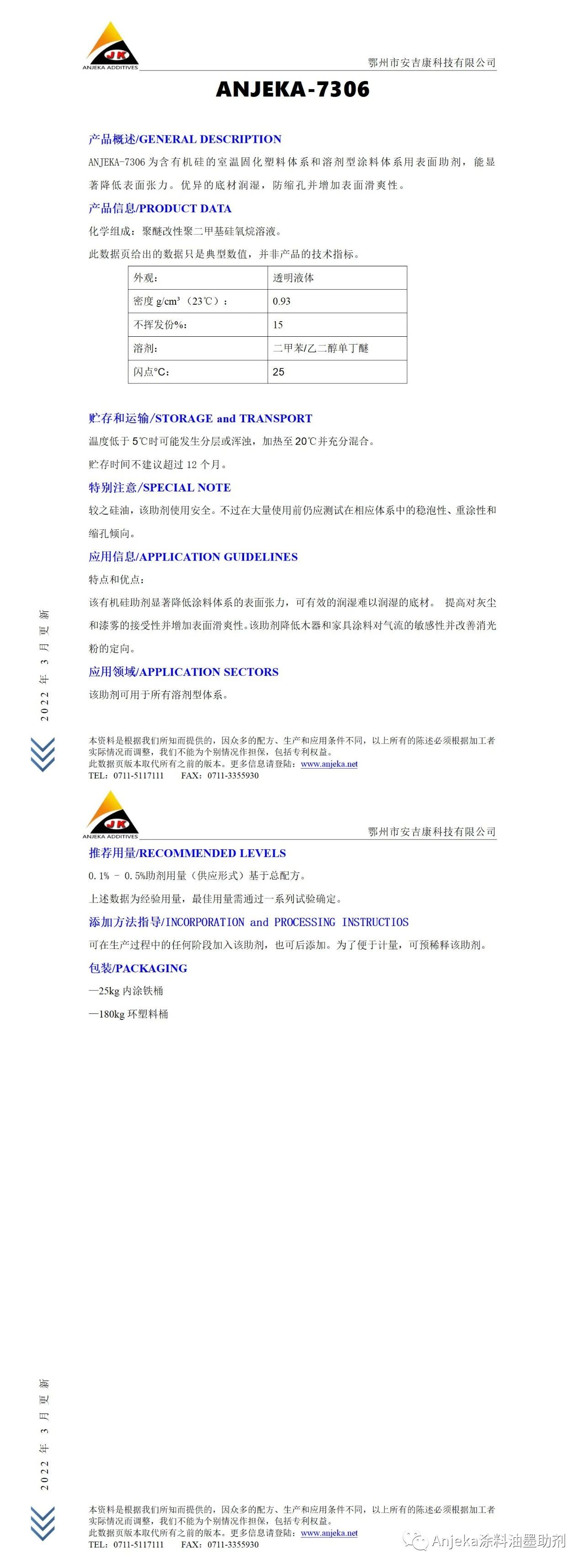 Anjeka 7306含有機硅的固化塑料體系和溶劑型表面助劑 流平性好