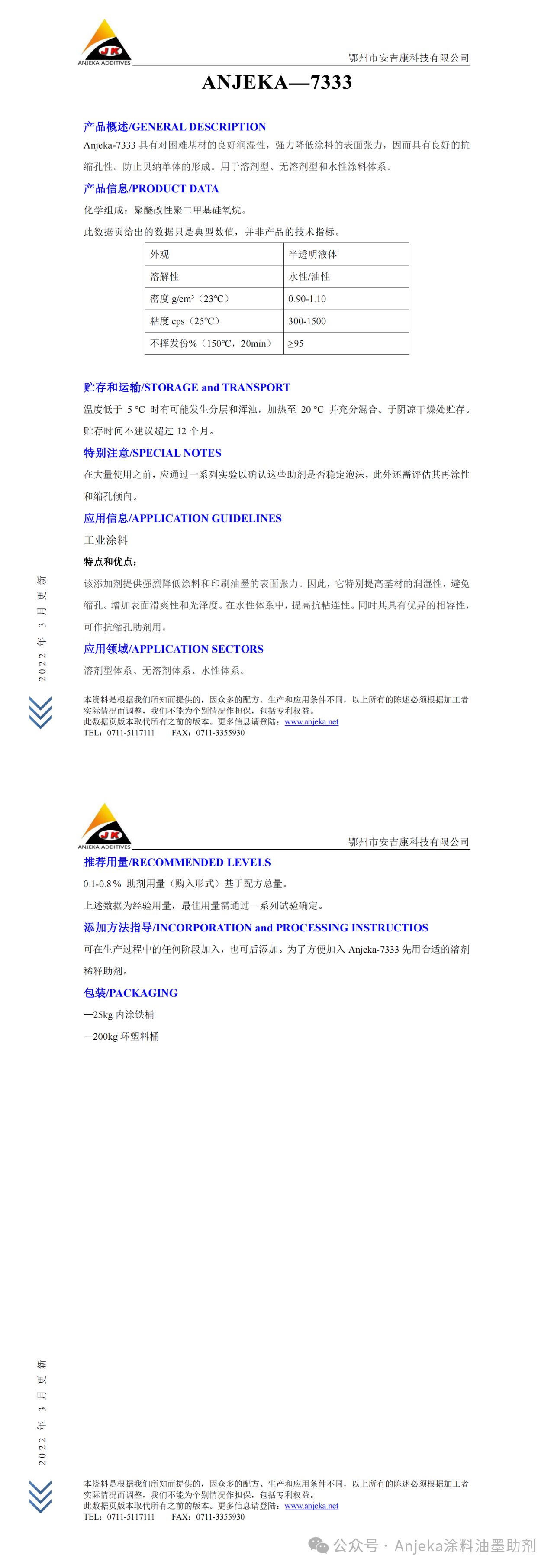 廠家Anjeka 7333潤濕流平劑 替代BYK333提高基材潤濕性避免縮孔
